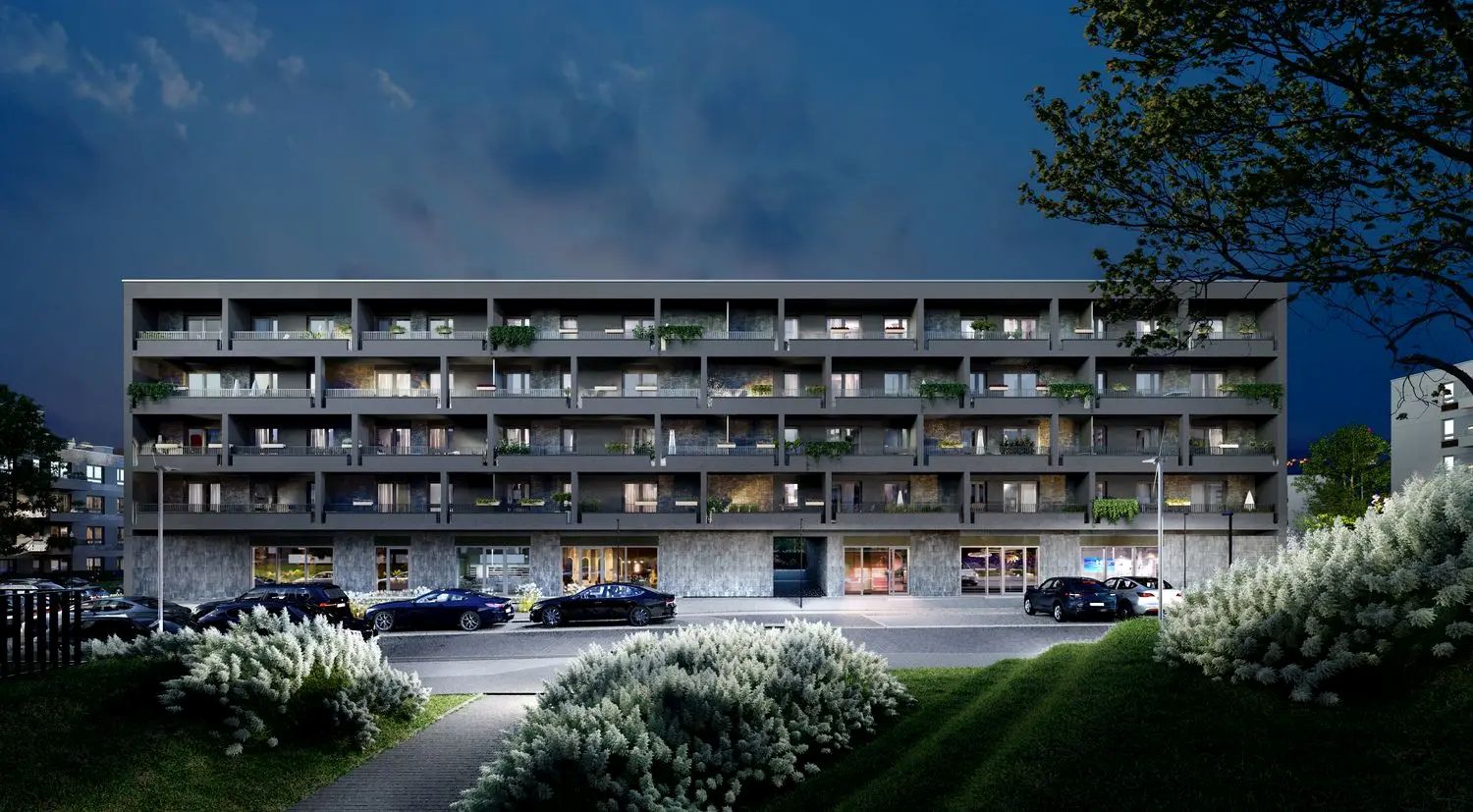 • Przemyślana koncepcja urbanistyczna – zabudowa trzy i czteropiętrowa zapewnia odpowiednie doświetlenie mieszkań, zachowanie prywatności oraz czytelny układ przestrzeni wspólnych, łącząc skalę inwestycji z kameralnym charakterem.